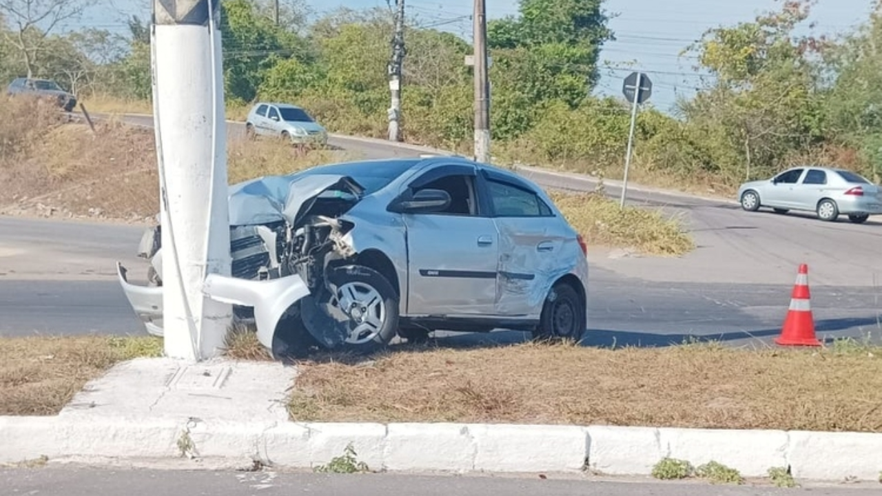 MANAUS (AM) – Um veículo descontrolado ficou com afrente destruída após atingir um poste de iluminação pública na avenida Ministro Mário Andreazza, Vila Buriti, bairro Distrito Industrial, zona Leste de Manaus.