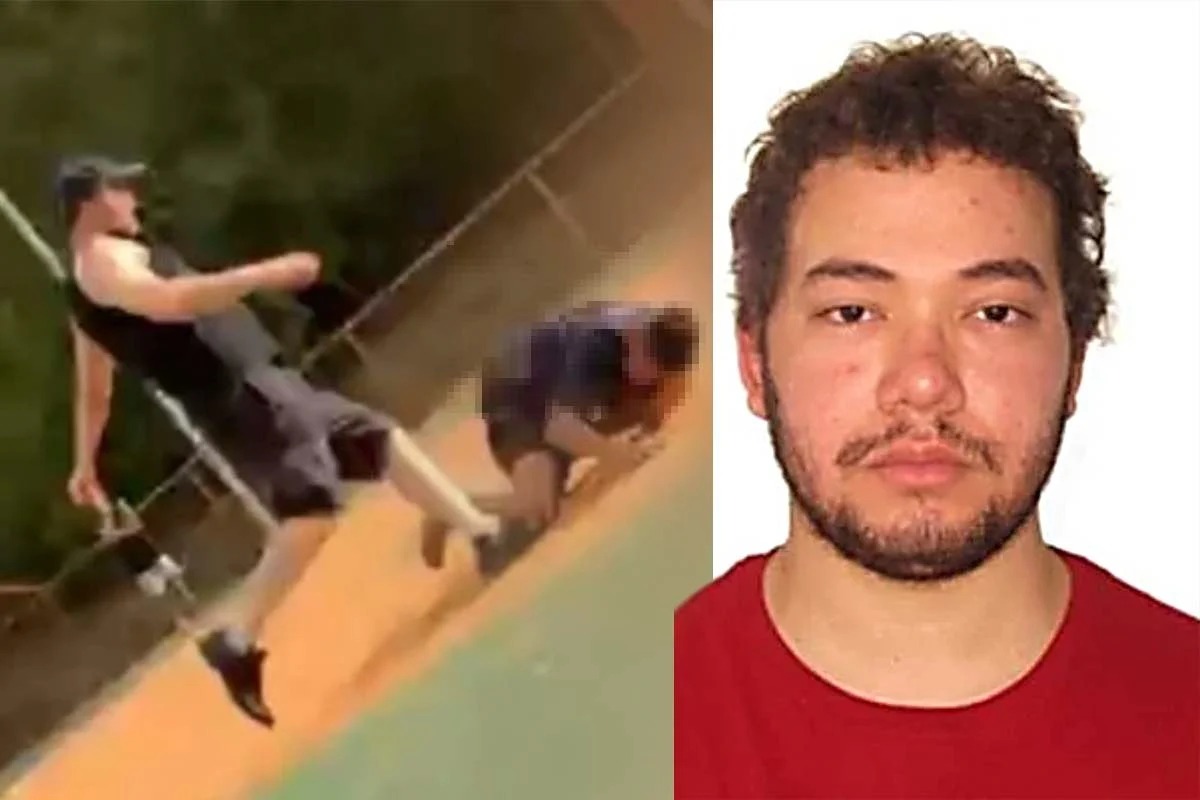 Nas imagens, o adolescente aparece caído no meio da quadra de esportes, enquanto o agressor, identificado como Victor de Sales Batista, aparece o agredindo com chutes na barriga. O menino grita: “Aí, aí, aí”. Mas o homem continua com as agressões. Confira as imagens:
