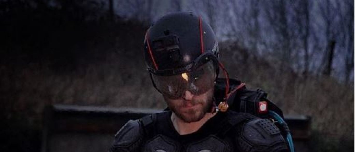 A roupa consiste de um exoesqueleto ligeiro com seis motores a jato.
