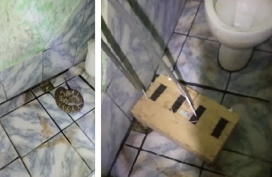 O Corpo de Bombeiros foi acionado e conseguiu capturar o animal. O homem contou que escutou um barulho e, quando foi entrar no banheiro, viu a cobra. Apesar do susto, ninguém ficou ferido.
