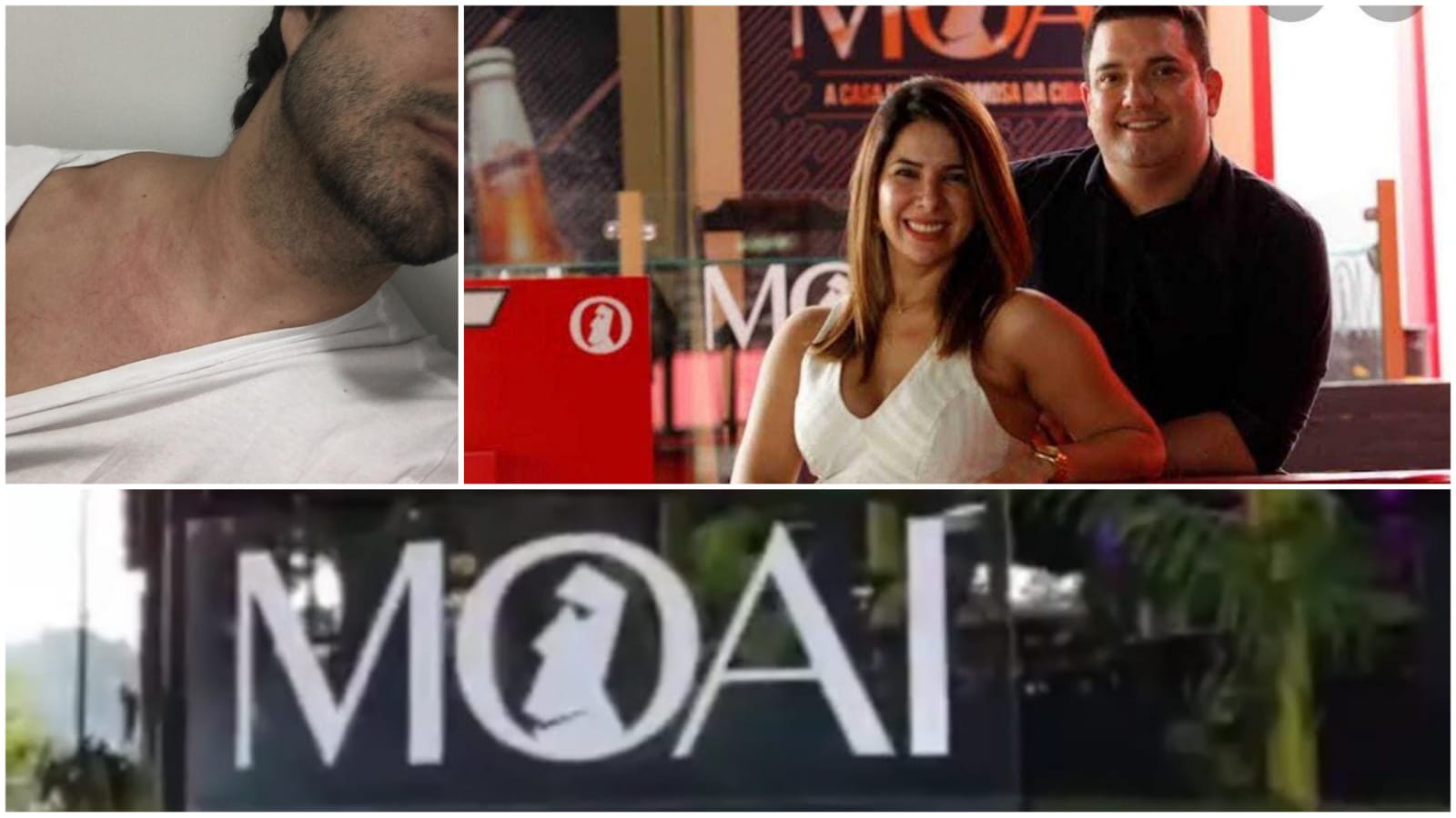 Bruno retrucou, negando que fizesse tal coisa. No mesmo instante, o dono do Moai, partiu para cima de Bruno e o jogou no chão. Paula, a esposa de Gerson, desferiu vários socos no rosto de Bruno. Ainda segundo a vítima, o casal iniciou uma série de insultos contra ele, chamando-o de “bixinha”, viadinho”, “filho de bandido” e ainda fizeram ameaças “eu vou acabar com a sua vida”.