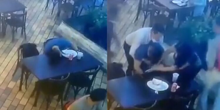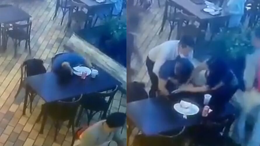 DISTRITO FEDERAL | Um homem de 38 anos se engasgou e desmaiou em um restaurante próximo à BR-116, em São Paulo, na última sexta-feira (26). Imagens de câmeras do estabelecimento mostram o momento em que o homem passa mal e chama a atenção de populares.