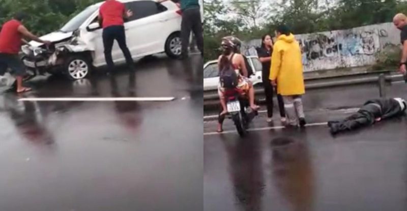 Com o impacto, a vítima foi arremessada da motocicleta. O carro ficou atravessado no meio da avenida e teve a frete destruída.