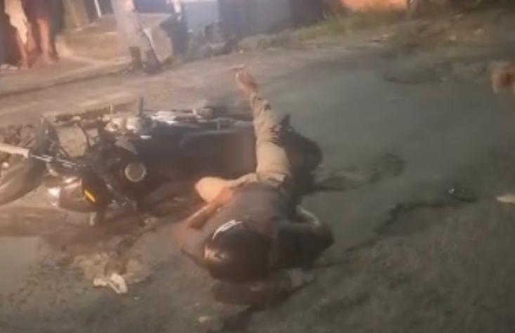 O rapaz estava numa moto modelo CG-150 de placa KZF2H05 cometendo assaltos pela área com o colega. No entanto, eles se desentenderam e o outro acabou disparando um tiro na região da cabeça dele e fugiu, deixando o baleado com a motocicleta.
