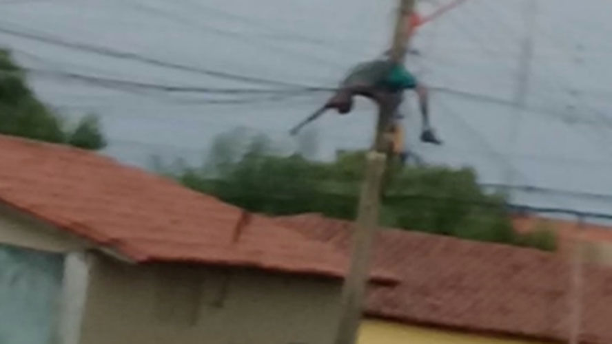 Em entrevista uma moradora disse que ficou assustada ao ver a situação. “Eu não queria nem ver, fiquei muito assustada, quando eu saí no portão ele estava lá no alto preso aos filhos caído para trás e se batendo”, disse a testemunha.