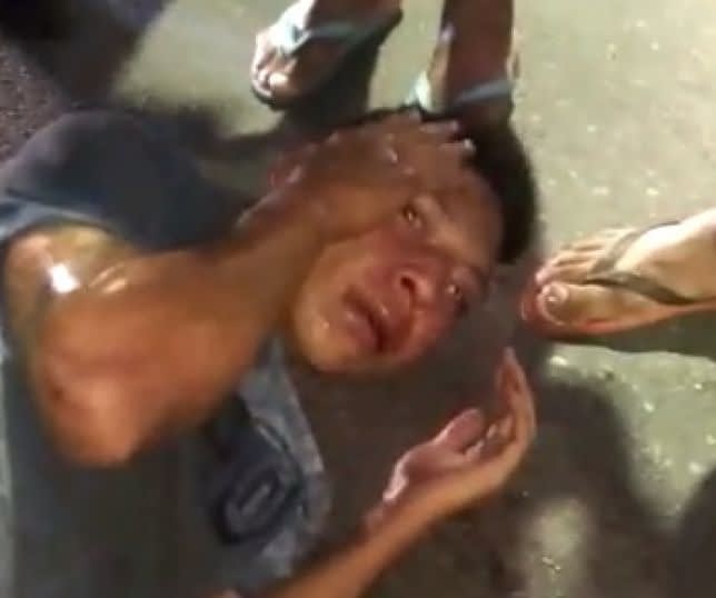 Conforme aparece no vídeo, o suspeito teria ainda batido no rosto de uma mulher durante a abordagem. Revoltados, populares chutem e xingam o homem.