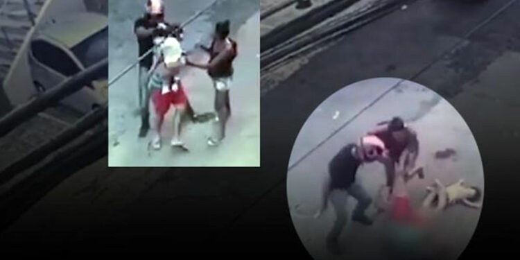 Quando a vítima passa, o suspeito corre, o aborda e atira diversas vezes contra sua cabeça. A criança cai no asfalto, mas é logo socorrida pela mulher que estava com o homem.