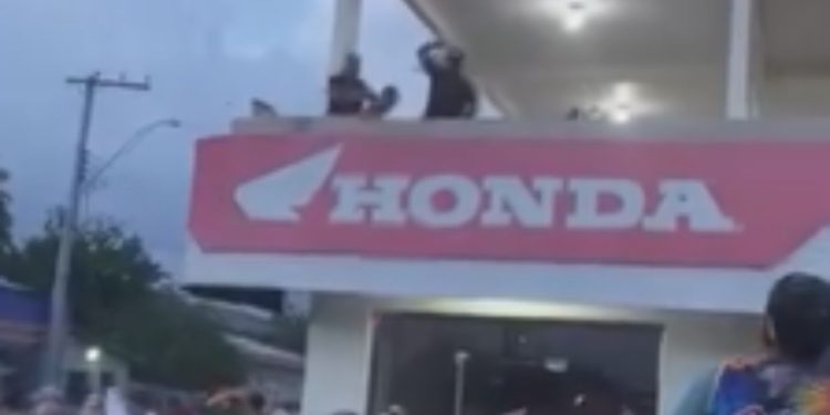 Na rua, havia muitas pessoas acompanhando a festa, incluindo famílias e crianças. O objeto foi jogado em direção à multidão e poderia ter causado ferimentos.