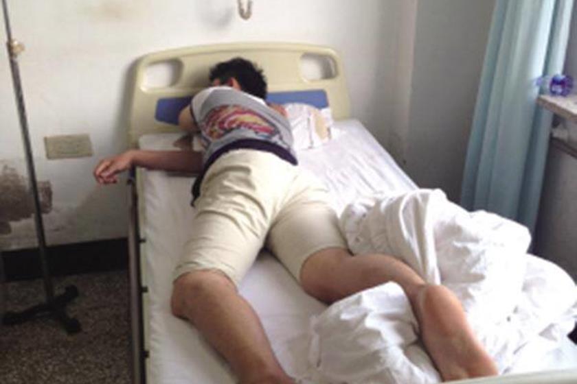 Segundo informações do Peoples Daily Online, o hospital só tem duas salas de operação e Wang foi encaminhado para aquela que serviria para realizar o parto da esposa. A mulher, no entanto, ainda estava em preparação em outra sala. Neste momento, um médico chega e pede para que ele tire as calças e deite na mesa de operação.