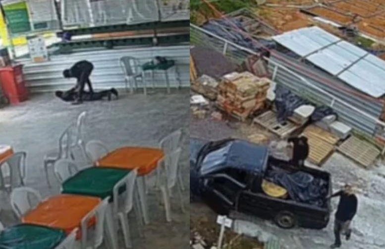 As imagens do circuito de segurança mostram que, horas antes do crime, dois homens invadiram o canteiro por volta das 13h e recolheram fiação elétrica e outros itens. Durante a ação, um dos trabalhadores foi rendido sob ameaça de arma de fogo e mantido como refém. Depois, os criminosos fugiram.