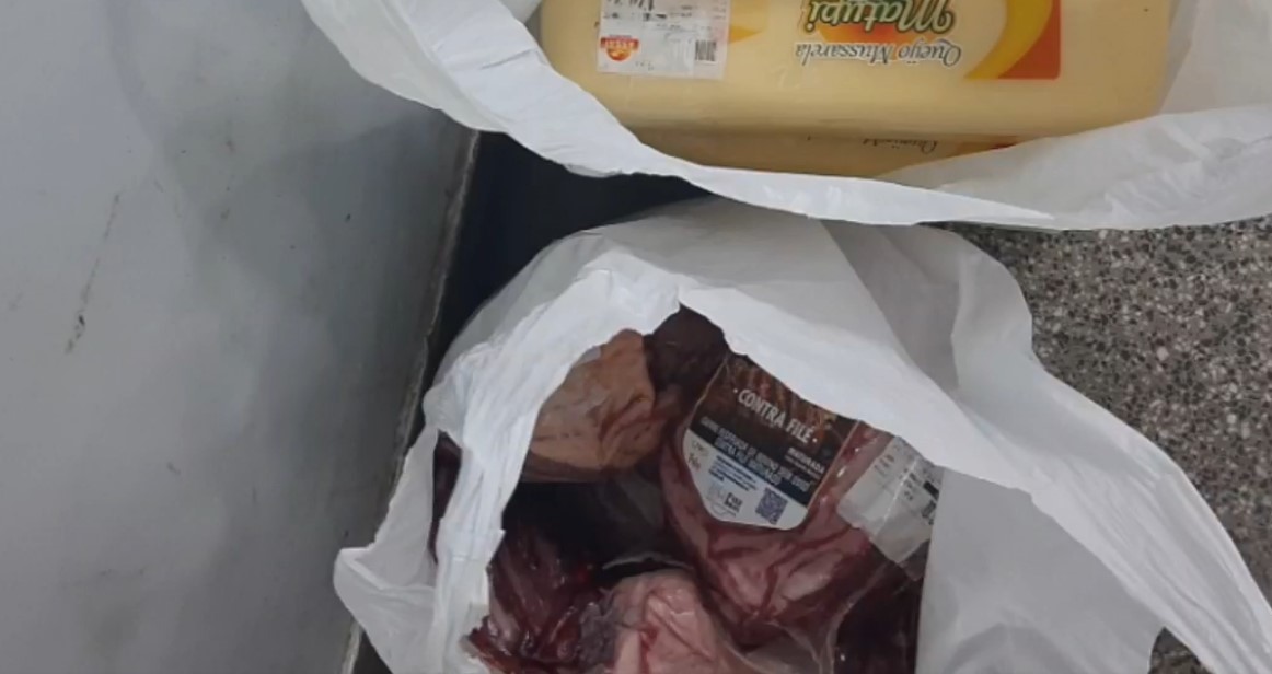 Ítalo foi flagrado com aproximadamente quatro quilos de carne e queijo dentro de um saco plástico. O prejuízo causado ao estabelecimento comercial é de R$ 800.