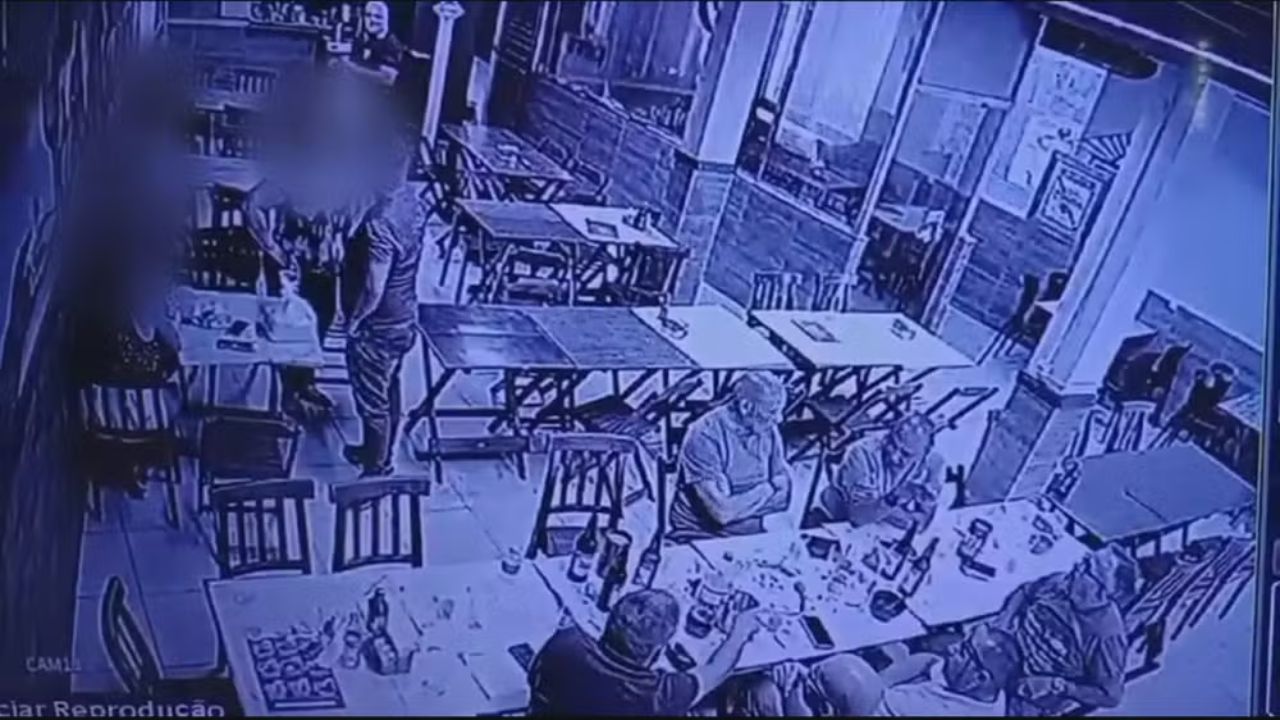 Nas imagens registrada pelas câmera de segurança do estabelecimento, o acusado aparece saindo da mesa onde estava com os amigos e beijando a menina por “achá-la bonita”.