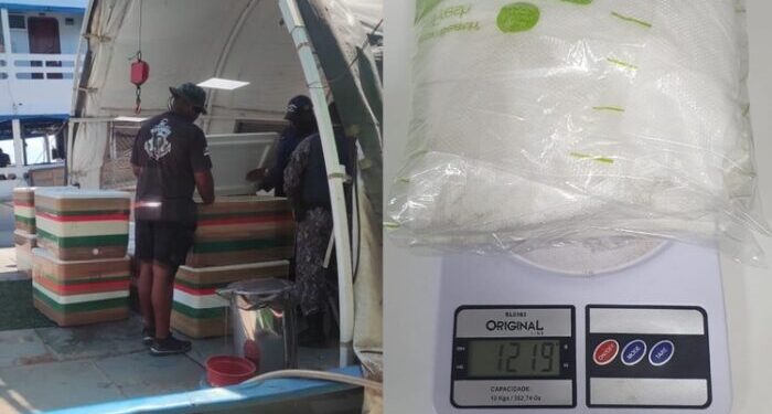 A ação foi realizada por policiais militares da Base Arpão, que fiscalizaram uma embarcação que vinha do município de Tabatinga.
