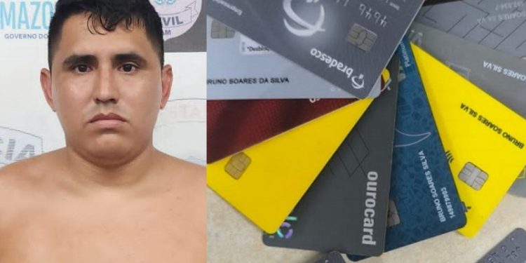 MANAUS – Um suspeito de estelionato foi denunciado e preso pela Rocam na quarta-feira (18), em Manaus, depois de ser pego pela Rocam com mais de cartões clonados. Bruno Soares da Silva pode ter feito dezenas de vítimas, afirmam policiais do 14º Distrito Integrado de Polícia (DIP).