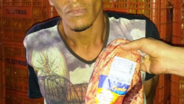 Os policiais encontraram uma peça de picanha de 1,5 kg avaliada em R$ 145 reais, dentro da cueca do suspeito.