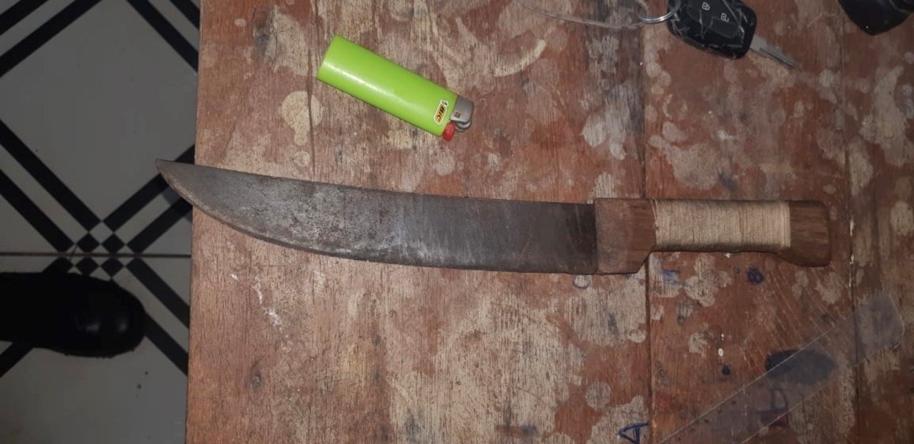 Os policiais que atenderam à ocorrência relataram que, após receberem chamada via telefone, foram até o posto de saúde do município e encontraram o indivíduo com a faca, tentando atingir uma agente de saúde. Os policiais conseguiram tomar a arma branca dele e conduzi-lo a viatura.