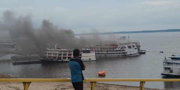MANAUS (AM) – Uma embarcação de nome ‘Rondônia’, atracada no Roadway da Manaus Moderna pegou fogo na tarde desta terça-feira (7).