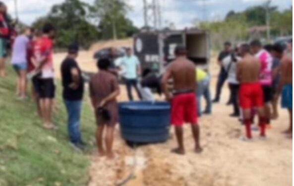 MANAUS (AM) – Peladeiros foram jogar bola na tarde deste domingo (6) na Cidade Nova, zona Norte de Manaus, e deram de cara com uma caixa de água virada de cabeça para baixo. Quando levantaram o objeto encontraram um cadáver de um homem ainda não identificado.