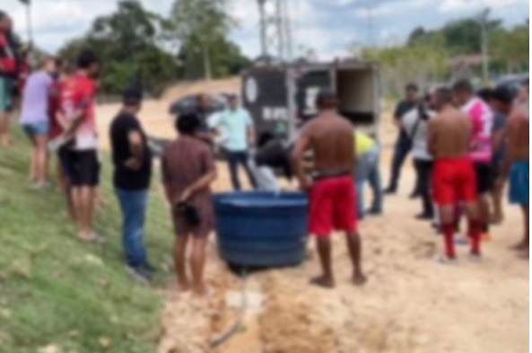 MANAUS (AM) – Peladeiros foram jogar bola na tarde deste domingo (6) na Cidade Nova, zona Norte de Manaus, e deram de cara com uma caixa de água virada de cabeça para baixo. Quando levantaram o objeto encontraram um cadáver de um homem ainda não identificado.