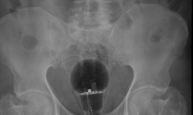 De acordo com o médico a sorte do paciente é que o objeto era de plástico. Se fosse de vidro teria estourado e poderia ter matado o paciente de hemorragia interna.