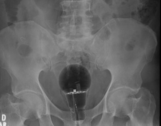 De acordo com o médico a sorte do paciente é que o objeto era de plástico. Se fosse de vidro teria estourado e poderia ter matado o paciente de hemorragia interna.