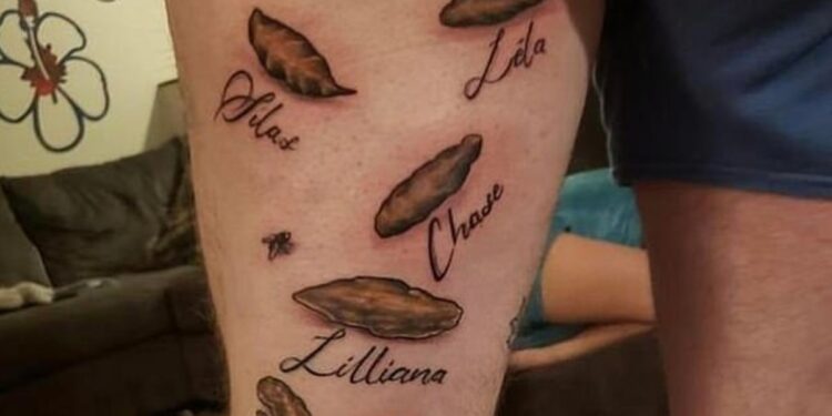 MUNDO | Um homem resolveu compartilhar no Reddit uma “singela” homenagem feita especialmente para seus filhos. por causa de tatuagens inusitadas na perna esquerda. O usuário decidiu tatuar desenhos de “cocô’ na perna esquerda e colocar, em cada um, o nome de cada um dos seus filhos.