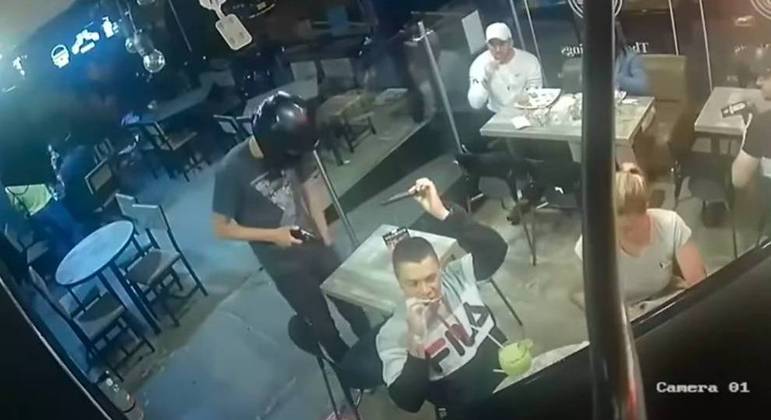 O vídeo de 1 minuto mostra a chegada de um ladrão de capacete, com arma em punho. As pessoas que estão do lado de fora do estabelecimento vão embora, enquanto todos os que estão comendo do lado de dentro ficam tensos.