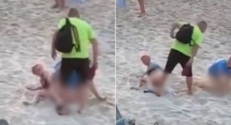 Furioso, um homem, que não foi identificado, chega perto do casal, pega o chinelo e bate várias vezes no homem, que se levanta e deixa o local cambaleando, aparentemente bêbado. Mais tarde, ele foi detido e levado para uma detenção pública.