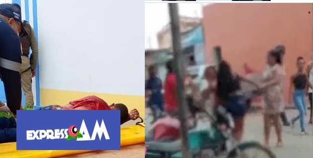 Revoltada, a mulher golpeou o pai com uma faca. Um vídeo que circula nas redes sociais mostra a mulher atacando o pai no meio da rua.