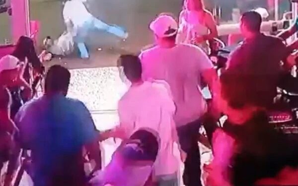 De acordo com a Polícia Militar, a confusão aconteceu no último sábado (9/10), no entanto, as imagens só foram divulgadas nesta terça-feira (12/10). No registro, é possível ver que o homem se aproxima da mulher e, na sequência, desfere socos, a derruba da cadeira e continua a agressão no chão, dando um chute.