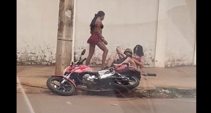 Após tentar fugir em sua moto, as mulheres trans agarraram o caloteiro e jogaram o mesmo no chão. Após tentar correr, uma das vítimas do suposto calote aplicou um golpe de jiu-jitu no homem.