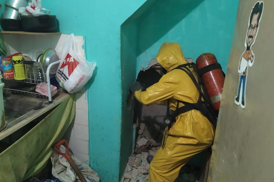 O corpo de Cleonice Correa de Jesus, de 42 anos, estava escondido na parede, revestido de concreto. Os bombeiros (foto em destaque) passaram toda a segunda-feira retirando o concreto para que o corpo seguisse para o Instituto Médico Legal (IML).