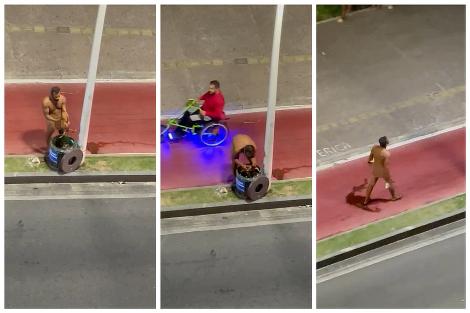 Nas imagens, é possível ver ciclistas, motos e carros passando, além de algumas pessoas evitando se aproximar.