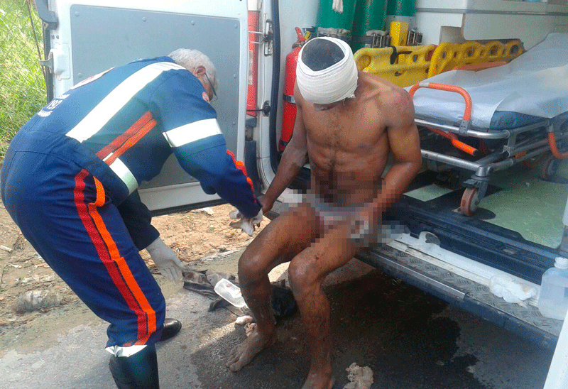 Durante os espancamentos, o homem começou a gritar pedindo socorro e os vizinhos acionaram a polícia pelo 190. Os policiais militares acionaram o Serviço de Atendimento Móvel de Urgência (Samu) que prestaram socorro a vítima.