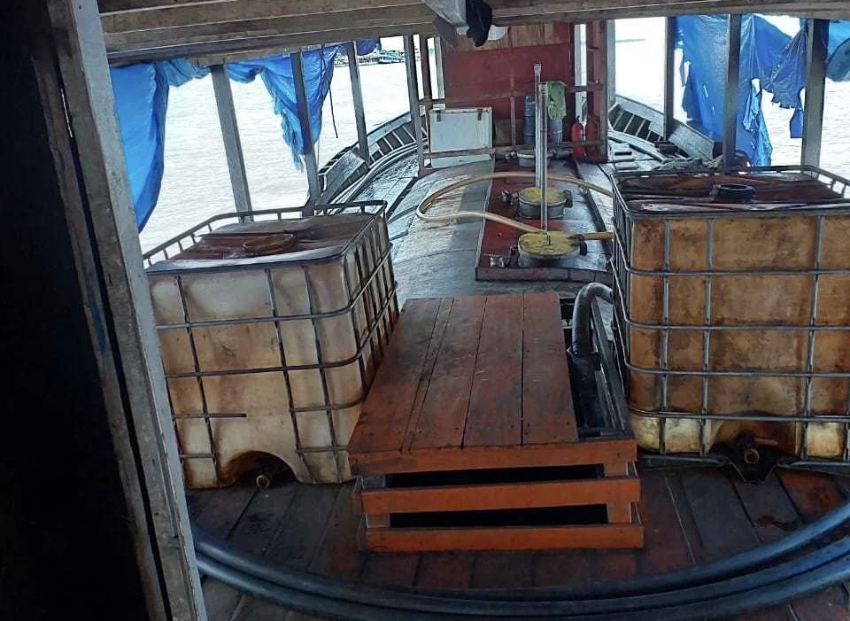 Os policiais militares foram ao local onde encontraram um barco com tanque de combustível contendo mais de 2 mil litros de combustível. O responsável foi abordado e questionado sobre a licença de operação e a documentação de origem do combustível. Ele informou que não possuía.