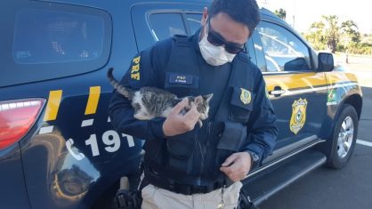 O felino, aparentando dois meses de vida, foi resgatado e está sob cuidados. Ele será adotado por um dos policiais rodoviários federais que participaram da ocorrência no dia.