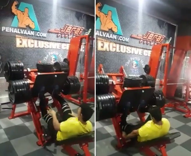 Rio –Um homem, identificado como Ambrish Patel, exagerou na carga – centenas de quilos – de um exercício conhecido como leg press.