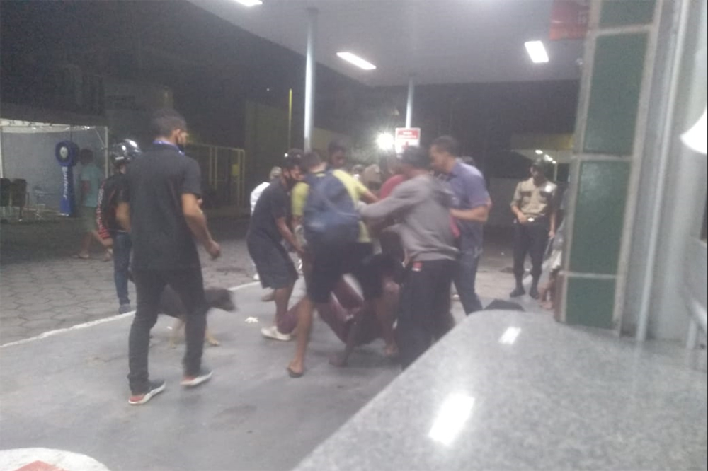 Nesse momento, o homem foi imobilizado pelos seguranças, populares e profissionais da saúde, que tentavam acalmá-lo e verificar seus ferimentos.