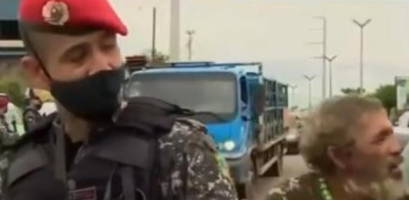 Manaus, AM – Uma imagem viralizou nesta quinta-feira nas redes sociais dos amazonenses. Enquanto um oficial da Força de Segurança Nacional dava entrevista ao vivo na TV para falar do enfrentamento aos bandidos, um cidadão, aparentemente bêbado, tentou arrancar o brasão da farda do agente.