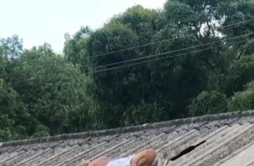 Moradores fizeram um vídeo do jovem já sem vida em cima do telhado. Confira: