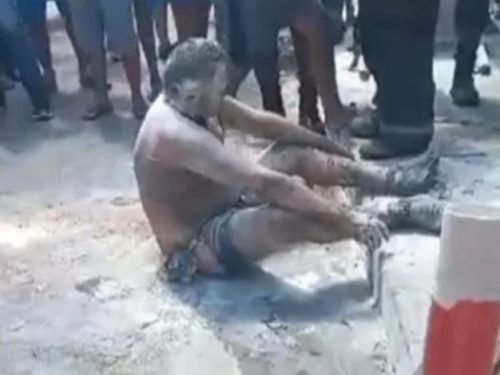 A população jogou cimento nele ao ver o desespero do criminoso, que não teve o nome divulgado.