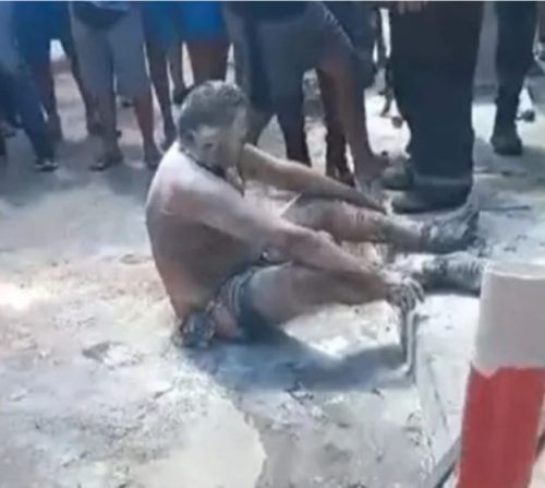 A população jogou cimento nele ao ver o desespero do criminoso, que não teve o nome divulgado.