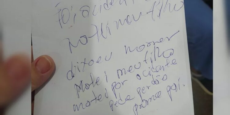 “Foi acidente. Matei meu filho. Deixa eu morrer. Matei meu filho por acidente. Peço perdão”, escreveu o pai na carta.