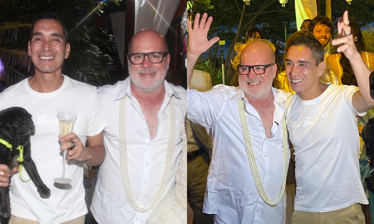 RIO DE JANEIRO | Você é convidado para um casamento, mas, quando chega à cerimônia, um dos noivos não é a pessoa que tinha o nome no convite. Foi exatamente essa a surpresa que os convidados do arquiteto e decorador Eder Meneghine, 60 anos, tiveram ao chegar ao casamento dele, na última terça-feira (7/9). No convite, quem se casaria com Eder seria o então namorado dele, de 23 anos. Porém, quem disse o “sim” foi o ex-namorado dele, o chefe de cozinha Hugo Oliveira, de 44 anos.