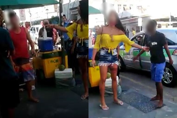 Populares que passavam pelo local tentaram apartar a briga, mas a mulher não permitiu.