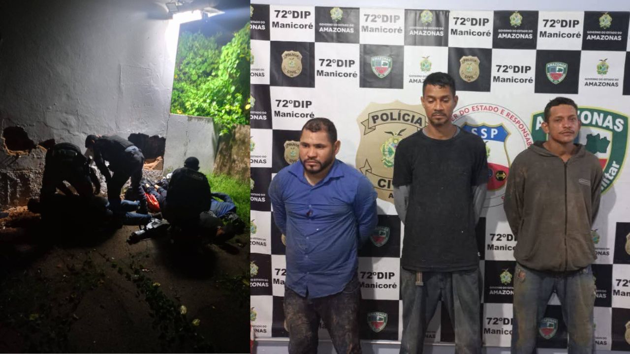MANICORÉ (AM) – Três homens foram presos pela Polícia Militar do Amazonas (PMAM) na madrugada de domingo (28), após invadirem uma agência do Bradesco em Manicoré, durante o período da Festa da Melancia.