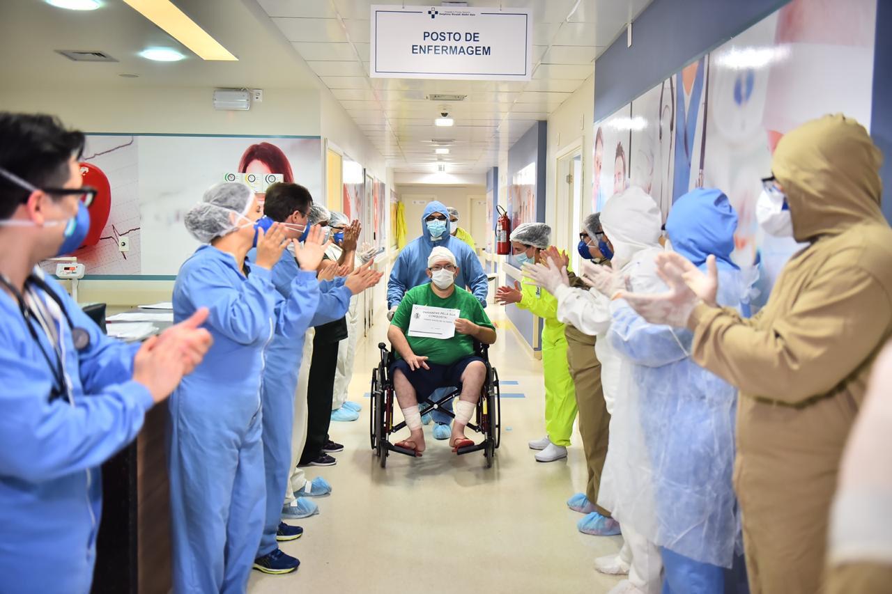 Os pacientes que tiveram alta na unidade de saúde passaram pelo “corredor da vitória”, iniciativa de humanização realizada pelos profissionais para comemorar a evolução dos pacientes quando têm alta melhorada, voltando para casa ou quando tem alta da UTI para leito clínico.