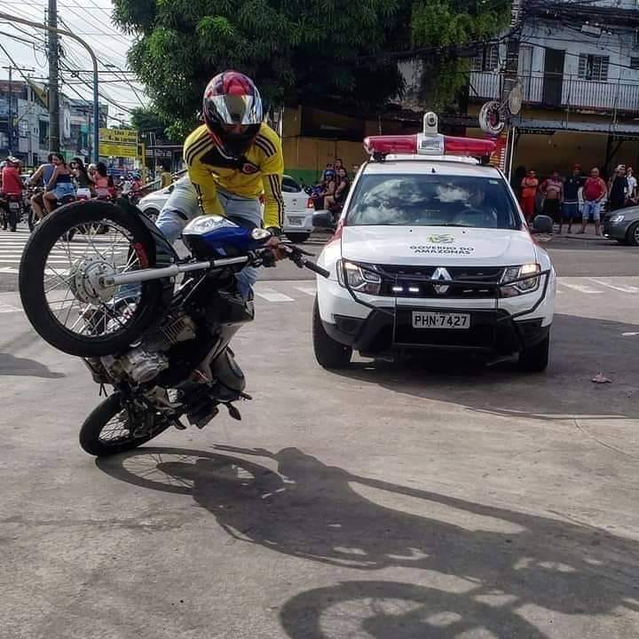 Manaus – Um jovem de 24 anos foi detido em quanto ele aparece empinando a moto em uma das ruas do bairro Jorge Texeira, na Zona Leste da capital amazonense. A imagem viralizou nas redes sociais após a cena inusitada ser interrompida pela polícia no último domingo (24).