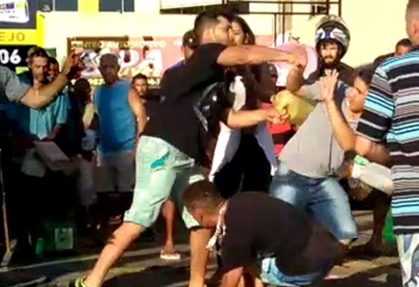 As imagens que já correm as redes sociais foram registradas por uma das pessoas que estavam na fila para encher galões com combustível. A briga começou quando um consumidor teria furado a fila para o abastecimento.
