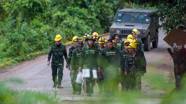 Ao todo, noventa mergulhadores foram mobilizados para realizar o resgate, quarenta deles tailandeses e os outros cinquenta de países como Austrália, Reino Unido e China. Além deles, 36 militares americanos do Comando do Pacífico foram acionados para ajudar na operação, que foi considerada um dos resgates mais complicados que os melhores mergulhadores de cavernas do mundo já viram. A temporada de monções no sul da Ásia, que provoca chuvas extremamente fortes e persistentes, e o fato de que o percurso deveria ser feito completamente no escuro com crianças inexperientes são fatores que dificultam ainda mais o trajeto, que já é perigoso até para profissionais. Na sexta-feira 6, um ex-mergulhador da Marinha tailandesa morreu enquanto espalhava tanques de oxigênio por uma possível rota de escape